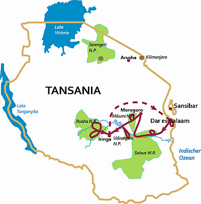 Pristine wilderness & magnificent wildlife A journey through the pristine nature and wilderness of southern Tanzania. You'll go on safari in a 4x4 vehicle in...